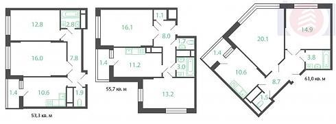 | Ноябрь 2016 | 53,3-61 м2 | 3 785 368 - 4 261 460 ₽ | ~70 586 ₽ | |