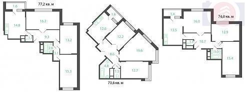 и трехкомнатные квартиры Комплекса, по причине того, что они не дотягивают по площади даже до 80 квадратов.