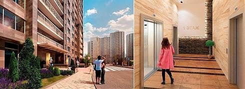 Времена, когда использование в строительстве монолитной технологии автоматически ставило такие дома на пару классовых ступенек выше, давно прошли. Новостройки нынче принято рассматривать как с позиций их экстерьера, так и собственно квартирного фонда. Так вот, с технической стороны данный ЖК уверенно занимает позицию в комфорт-классе – вентилируемые фасады его корпусов отделаны керамогранитными плитами, в подъездах предусмотрены помещения для консьержей, нежилые первые этажи предназначены для размещения на них коммерческих инфраструктурных объектов. Входные группы будут отделываться недешевыми материалами, на секцию приходится по три лифта.