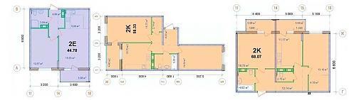 Среди набора двухкомнатных квартир присутствуют евро-варианты, да классические линейные и распашные двушки: