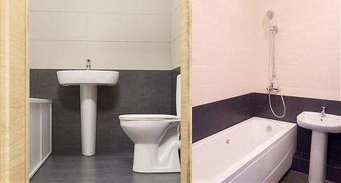 Квартиры в этом доме продавались в трех вариантах: свободная планировка без отделки, предчистовая отделка и отделка под ключ, среди примеров которой, выложенных на официальном сайте ЖК «Новый Ногинск», отчего-то доминировали фотографии санузлов: