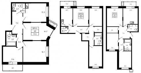 | Июль 2019 | 71,3-82,6 м2 | 7 432 659 - 7 885 185 ₽ | ~100 117 ₽ | |