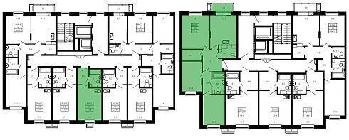 Каждая из пяти «квартирных» секций по-своему уникальна: в зависимости от этажности и наполнения квартирного фонда они различаются по таким важным показателям, как количество квартир на лестничной клетке и число лифтов в подъезде.