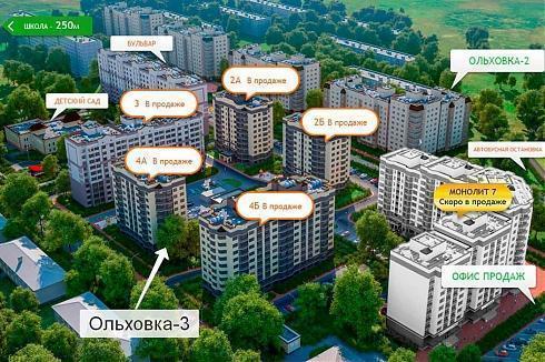Дома первой и второй очередей строительства были панельными. На смену им в третьей очереди, выведенной на рынок под названием ЖК «Ольховка 3», пришла смешанная технология, при которой каркас зданий собирался из готовых железобетонных конструкций, а наружные стены выкладывались из ячеистобетонных блоков, утеплялись и закрывались облицовочным кирпичом. Единственное исключение сделано для корпуса №3, в отделке фасадов которого, вместо кирпича использована «мокрая» штукатурка. Внешние блоки кондиционеров не возбраняется вешать на фасады – специальных мест под их размещение не предусмотрено. Мусоропроводы есть только по проекту – от них было решено отказаться. Парковать автомобиль придется по периметру домов – подземных паркингов здесь по понятным причинам нет.