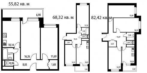 | Июль 2017 | 69,45-92,2 м2 | 7 355 520 - 10 142 000 ₽ | ~108 680 ₽ | |