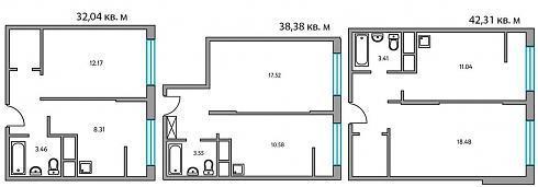Основной массив предложений однокомнатных квартир содержит варианты с площадью 32-36 кв. м. В квартирах с большим метражом прибавка коснулась в основном жилой комнаты, хотя грешить на площадь кухни здесь точно не приходится: