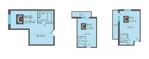 | Декабрь 2017 | 23,59-77,28 м2 | 1 226 680 - 3 759 184 ₽ | ~49 859 ₽ | |