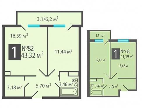 | Июль 2020 | 42,13-44,1 м2 | 2 400 000 - 2 650 000 ₽ | ~58 721 ₽ | 29.4% |