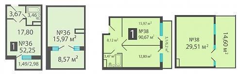 Однокомнатные квартиры в этом случае имеют площади от 50 до 90 кв. м.