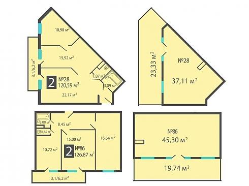 | Июнь 2017 | 54,48-126,87 м2 | 2 819 337 - 4 787 440 ₽ | ~42 260 ₽ | 4.61% |