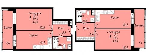 | Июль 2020 | 46,2-46,8 м2 | 4 065 600 - 4 212 000 ₽ | ~89 974 ₽ | |