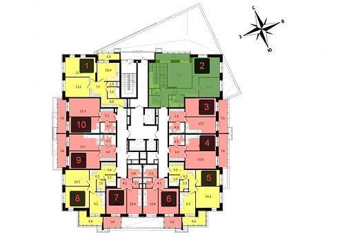 Схема расположения квартир на лестничных клетках тоже едина – на любом этаже их будет 10.