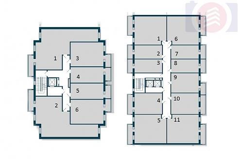 В зависимости от конкретной секции на этажах ЖК «Пироговская ривьера» может быть расположено по 6 квартир (в этом случае в секции устанавливается один пассажирский лифт), или 11 квартир (пассажирских лифтов в таких секциях будет два, так что и не думайте отдавать своих детей в музыкальную школу по классу фортепиано):