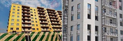 После этого стены закрываются слоем утеплителя, на который в корпусах №№17, 18 и 19 сразу монтировались панели из травертина: