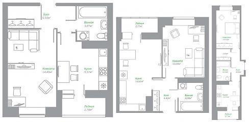 Даже небольшая однокомнатная квартира площадью 35,58 кв. м оказывается очень грамотно спланированной, в 36,5-метровых квартирах приоритет остается за кухней, которую можно использовать и как небольшую гостиную, с недавнего времени ставшие популярными распашные "однушки" представлены в площади 38,3 кв. м: