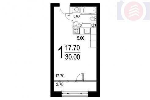 Так для студий придумано лишь одно планировочное решение, которое, впрочем, получилось очень удачным: помимо достойной площади, в таких квартирах есть нормальный санузел и приличных размеров лоджия, метраж которой, правда, указан без каких-либо коэффициентов: