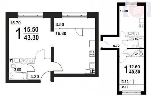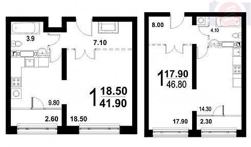 Есть здесь и варианты с еще большей кухней, и отличные однушки-распашонки: