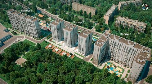 к.1: 17 этажей (6 секций), 560 квартир, 12 коммерческих помещений.
