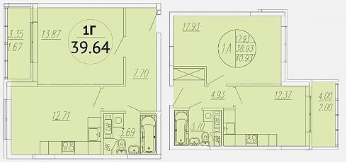 Однокомнатные. 40 кв. м плюс-минус – это основной массив предложений. Можно выбрать расположение лоджии в кухне или в жилой комнате: