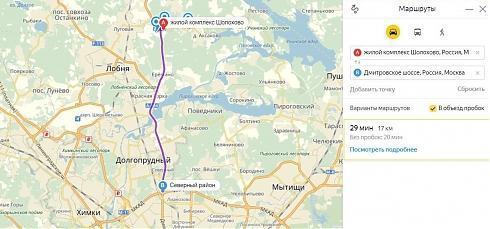 ЖК «Шолохово» строится на Дмитровском шоссе, в 16 км от МКАД. Комплекс, с одной стороны, примыкает к Дмитровскому шоссе, с другой – упирается в лесной массив и граничит с рекой Раздериха. Так что близкое расположение одной из крупнейших магистралей Подмосковья с неизбежно повышенным шумовым фоном отчасти нейтрализуется журчанием воды, шелестом листвы и пением птиц. Перемещения в Москву и обратно утомительными не будут, даже с учетом пробок путь займет около получаса: