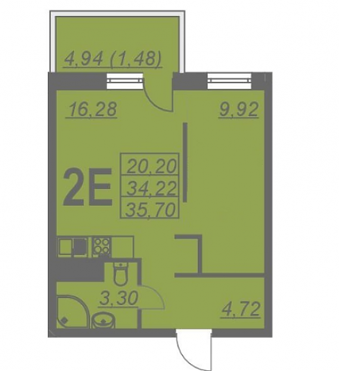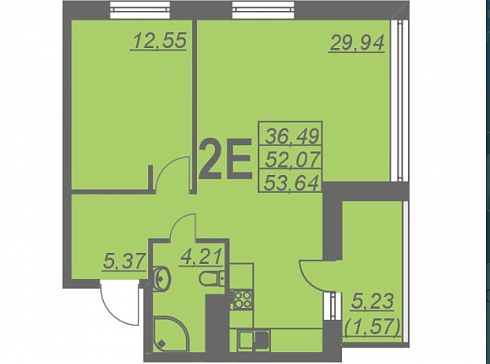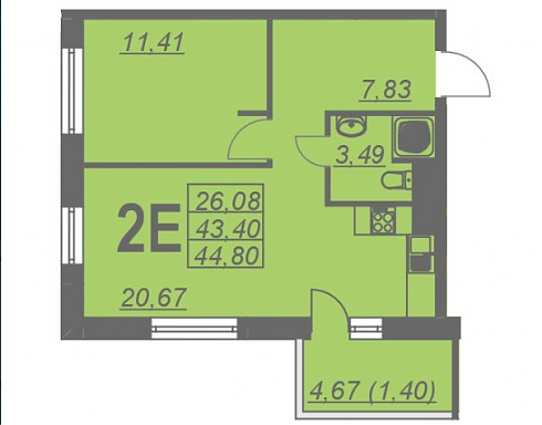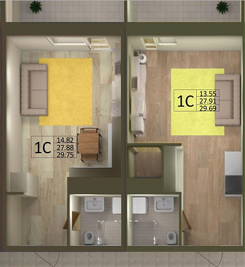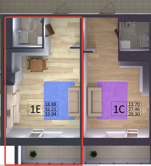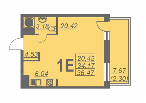 Те квартиры, которым в разделе «планировки» на сайте Комплекса присвоен индекс 1Е, отличаются от студий лишь большим метражом – в остальном это те же четыре стены и общее пространство. Вариант поменьше ничем особо не выделяется:
