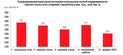 Самый высокий уровень цен зафиксирован в новостройках на начальном этапе строительства – 277 тыс. руб./кв. м. При этом минимальный показатель отмечен в проектах, уже введенных в эксплуатацию – 251 тыс. руб./кв. м.