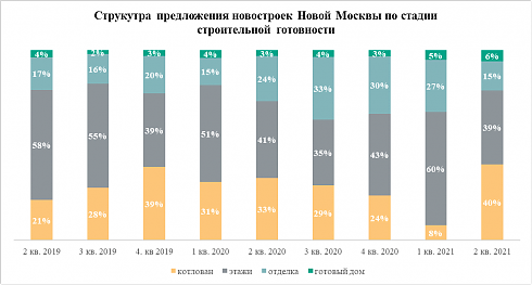 К концу I полугодия 2021 года порядка 40% квартир новостроек Новой Москвы предлагались застройщиками в домах на ранней стадии строительства, подсчитали аналитики «Метриум». Это самое большое значение за всю историю местного рынка. При этом 81% новомосковских новостроек уже продаются через эскроу-счета, что больше, чем в «старой» Москве.