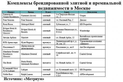 С середины мая доля запросов на брендированные резиденции и апартаменты в общем числе запросов от потенциальных покупателей элитного жилья в Москве выросла в 2 раза и достигла 23%, подсчитали эксперты «Метриум». Постепенное ослабление карантинных мер после длительной «паузы» активности привело к росту интереса покупателей к формату брендированных резиденций и апартаментов в Москве. Сейчас на рынке столичных элитных и премиальных новостроек представлено порядка 11 таких проектов.