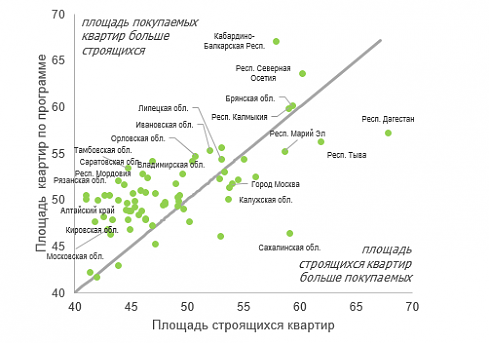 Эксперты компании проанализировали отчетность банков по программе и сопоставили ее с данными информационной системы наш.дом.рф о строящемся жилье. Выяснилось, что во многих регионах площадь квартир, покупаемых с помощью субсидируемой ипотеки, в среднем выше площади жилья в стройке. Это свидетельствует о том, что льготная программа позволяет гражданам делать выбор в пользу более просторного и комфортного жилья.