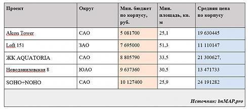 В этой пятерке – два проекта от компании Wainbridge (ЖК AQUATORIA и комплекс апартаментов SOHO+NOHO), Alcon Tower от застройщика Alcon Development, Loft 151 (Плаза Девелопмент) и «Новоданиловская 8» от «Самолет Девелопмент».