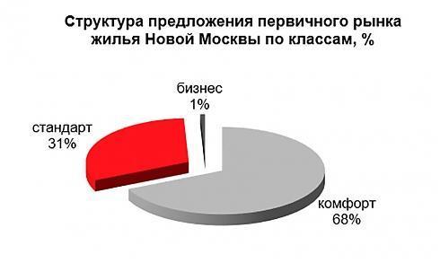 Развитие рынка новостроек на присоединенных территориях остается одним из приоритетных направлений в Московском регионе. Для сравнения только за последний квартал прошлого года предложение квартир увеличилось на 20%. Сейчас суммарно на первичном рынке Новой Москвы представлено 28 проектов стандарт-, комфорт- и бизнес-класса общей площадью 463 тыс. кв. м.