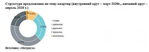 По данным «Метриум», по итогам апреля 2020 года на первичном рынке жилья массового сегмента г. Москвы в реализации находилось 85 проектов. Общий объем предложения составил около 14 1951квартир (830,6 тыс. кв. м.). В сравнении с предыдущим месяцем он увеличился на 6,2% по количеству лотов и на 5,6% по продаваемой площади.
