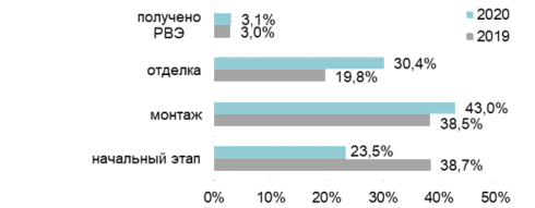 Структура предложения по стадиям строительной готовности (количество квартир)