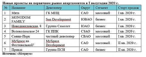 По итогам I полугодия 2020 года самые бюджетные предложения на рынке апартаментов зафиксированы в объектах: