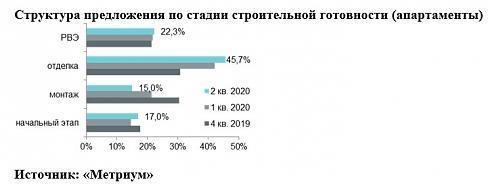 «В I полугодии 2020 года рынок апартаментов комфорт- и бизнес-класса был достаточно устойчив к негативным событиям, произошедшим в середине отчетного периода, – комментирует Мария Литинецкая, управляющий партнер компании «Метриум» (участник партнерской сети CBRE). – Несмотря на ограничительные мероприятия, введенные на фоне коронавирусной инфекции и продлившиеся около двух месяцев, на рынок поступило 7 новых апарт-комплексов, что в целом соответствует уровню прошлых лет (за аналогичный период 2019 года было выведено всего 3 новых проекта, 2018 года – 9 объектов, 2017 года – 7 комплексов с апартаментами). При этом текущий объем экспозиции за полгода практически не изменился (+1,1 п.п.), что свидетельствует о вымывании наиболее ликвидного предложения.