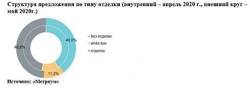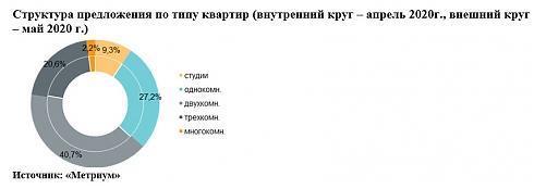 По данным «Метриум», на конец мая 2020 года на первичном рынке жилья массового сегмента велись продажи в 86 жилых комплексах. За отчетный период общий объем предложения по количеству лотов в реализации снизился на 3,9% и составил 13 6451 квартир. Совокупная площадь жилья сократилась на 3,1% – до 804,8 тыс. кв. м.