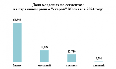 Средняя стоимость предложения кладовых на первичном рынке «старой» Москвы по итогам 2024 года достигла 1,12 млн руб. За прошедший год показатель вырос на 20,9%. В разрезе сегментов средняя стоимость келлеров сегодня выглядит следующим образом: в массовом – 802 тыс. руб. (+32,8% за год), бизнес-классе – 1,18 млн руб. (+16,8%), премиум-классе – 853 тыс. руб. (+16,8%), элитном сегменте – 9,04 млн руб. (+42,6%).