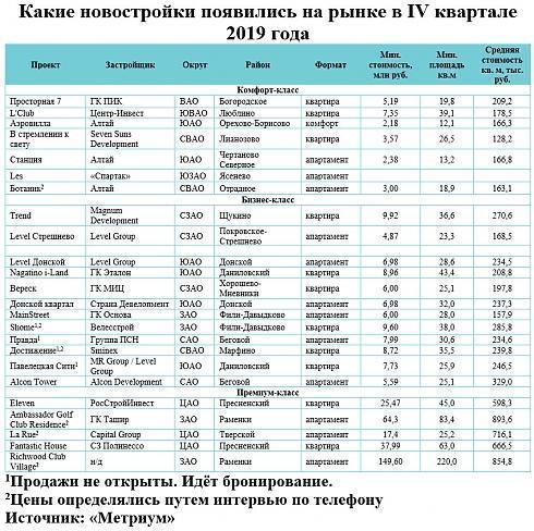 В IV квартале 2019 года рынок новостроек Москвы пополнили 24 новых проекта, подсчитали эксперты «Метриум». Наиболее активными были девелоперы проектов бизнес-класса, среди которых есть объекты на 30% дешевле рынка. Однако в целом уровень цен в новых объектах высокий и возможности инвесторов сокращаются.