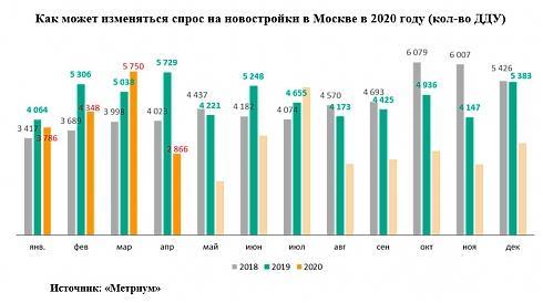 По оценкам экспертов «Метриум», спрос на жилье в Москве по итогам 2020 года может снизиться на 20-30%. Летом после снятия ограничений произойдет всплеск числа сделок, которые будут заключать клиенты, не успевшие это сделать до самоизоляции. Однако уже осенью восстановительный рост иссякнет, эконмическая ситуация ухудшится (станет ясно, сколько предпринимателей не «пережили» пандемию).