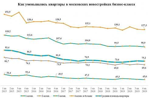 Между тем, последние годы показатели средней площади квартир в новостройках бизнес-класса сокращались: в 2015 году – на 9%, в 2016 году – на 6%, в 2017 году – на 5%, в 2018 году – на 4%. В целом за пятилетие средняя площадь квартиры уменьшилась на 20% – с 93 кв.м до 75,2 кв.м.