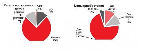 Основная часть покупателей бизнес-класса (75%) уже имеют московскую прописку, поэтому квартиры чаще всего приобретают для улучшения жилищных условий – с этой целью совершалось 72% покупок. Квартиры в качестве инвестиции в будущее, для дальнейшего проживания детей, составляют 23% в общем количестве сделок. Доля сделок с привлечением ипотеки в сегменте бизнес-класса составляет порядка 70%.