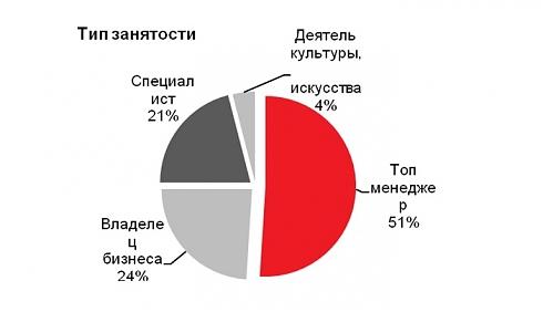 Большинство покупателей жилья бизнес-класса – топ-менеджеры и руководители – 51%, а также владельцы бизнеса – 24%.