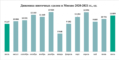 На рынке ипотеки спрос продолжал расти. В июле банки выдали заемщикам в столице 11,9 тыс. ипотечных кредитов, что на 11% больше, чем в июне (10,7 тыс.), и на 30% больше, чем в июле 2020 года (9,2 тыс.). В целом для июля это стало рекордным показателем, считают эксперты «Метриум».