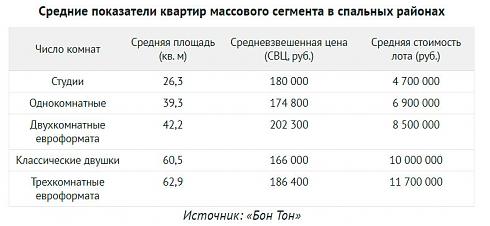 В массовом сегменте новостроек в спальных районах можно рассчитывать на очень разные квартиры и апартаменты, говорит Надежда Коркка, («Метриум»). Разброс цен – от 4 млн до 15 млн рублей. В среднем новостройка массового сегмента обойдется примерно в 10 млн рублей.