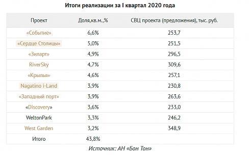 На их долю приходится 4,9-6,6% от общего объема реализации, а в общей сложности проекты из топ-10, по расчетам агентства, аккумулируют порядка 43,8% от совокупных продаж.