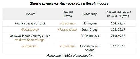 Новая Москва - это территория комфорткласса, и жилых комплексов уровня «бизнес» здесь мало - всего шесть проектов.