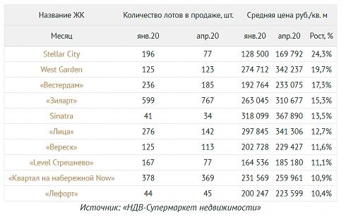Среди проектов наибольший рост отмечен в таких комплексах, как ЖК Stellar City, West Garden, «Вестердам»: