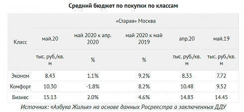 При этом средний чек сделки (бюджет покупки квартиры) в мае в «старой» Москве упал на 1,6% до 12,7 млн руб., сообщает «Метриум». Надежда Коркка объясняет это уменьшением средней площади квартиры в структуре спроса: в апреле она составляла 57 кв. м, а в мае – 55 кв. м. В годовом выражении средний бюджет покупки увеличился на 10%.