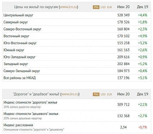 По данным аналитического центра www.irn.ru, за первые шесть месяцев 2020 г. квадратный метр вторичного жилья в Москве подорожал на 2,9% до 183 570 руб. в среднем. На фоне ослабления рубля долларовые цены на столичные квартиры за тот же период просели на 6% до $2 650 за кв. м.