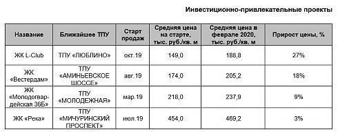 «Все проекты, которые выходят в составе ТПУ отличаются высоким ростом цены на недвижимость в течение всего периода строительства. Среди новостроек, вышедших на рынок в прошлом году, самые хорошие показатели по росту зафиксированы в ЖК L-Club, расположенном у ТПУ «Люблино», - с октября 2019 года цены выросли на 27%, со 149 до 188,8 тыс. руб. за кв. м, - комментирует Владимир Моребис, партнер, коммерческий директор компании Est-a-Tet. – Высокий рост также отмечен в ЖК «Вестердам», в котором стоимость кв. м выросла на 18% со 174 до 205,2 тыс. рублей всего за полгода».